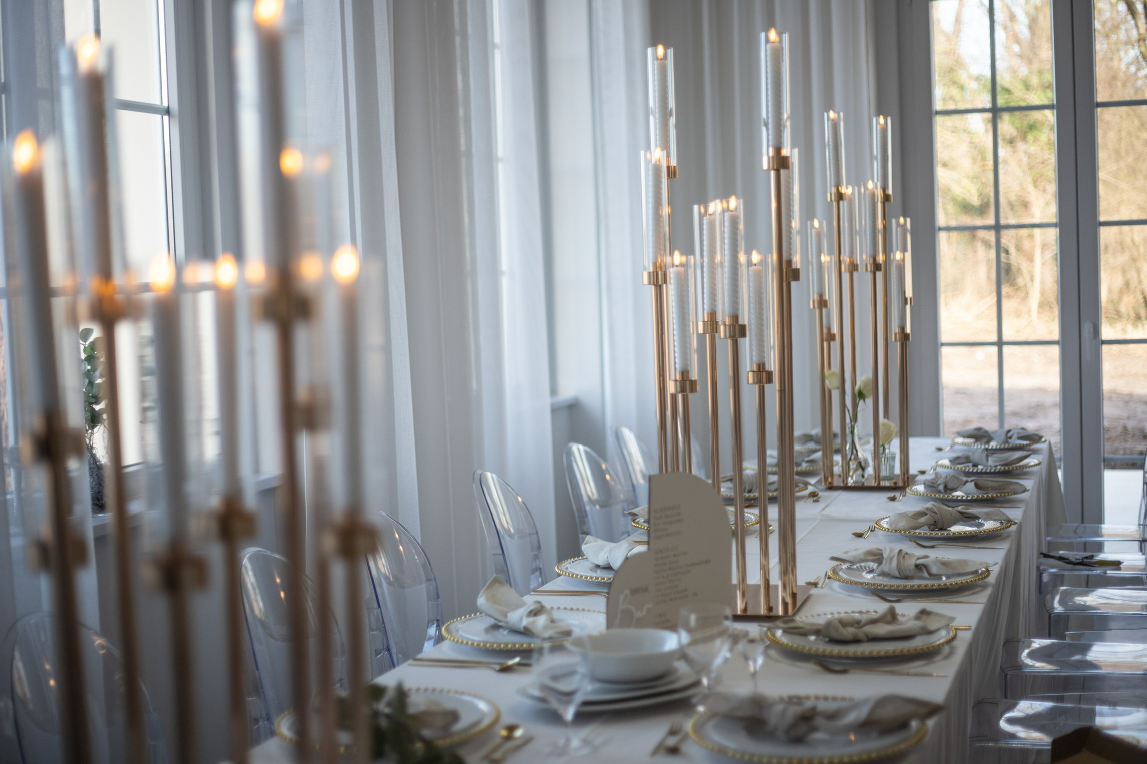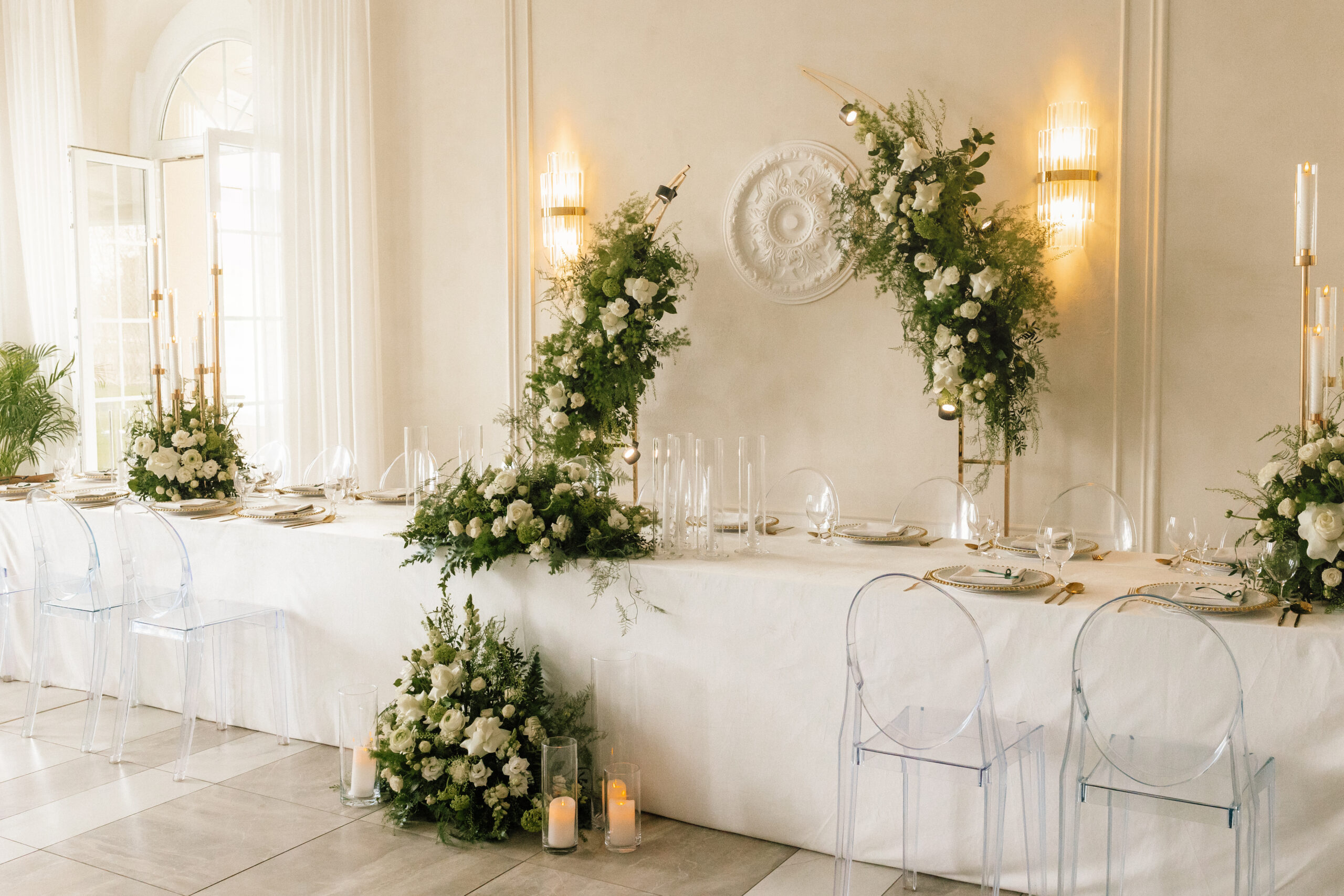 Współpracujemy z florystami i dekoratorami, którzy tworzą spójną oprawę – od bukietu Panny Młodej po wystrój sali i ogrodu. Wszystko zgodnie z motywem przewodnim.